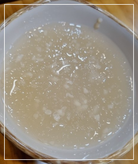1. 엿기름가루를 미지근한 물에 풀어서 윗물이 맑아질 때까지 3시간 정도 두었다가 윗물을 걷어내고 찌꺼기는 버린다.