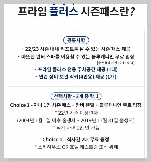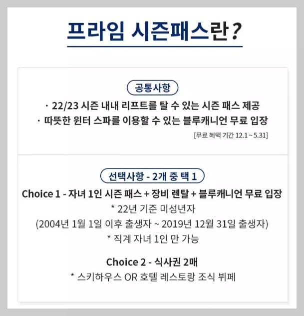 평창 휘닉스파크 22/23 프라임 시즌 패스 정보(휘닉스파크 스키 시즌권)
